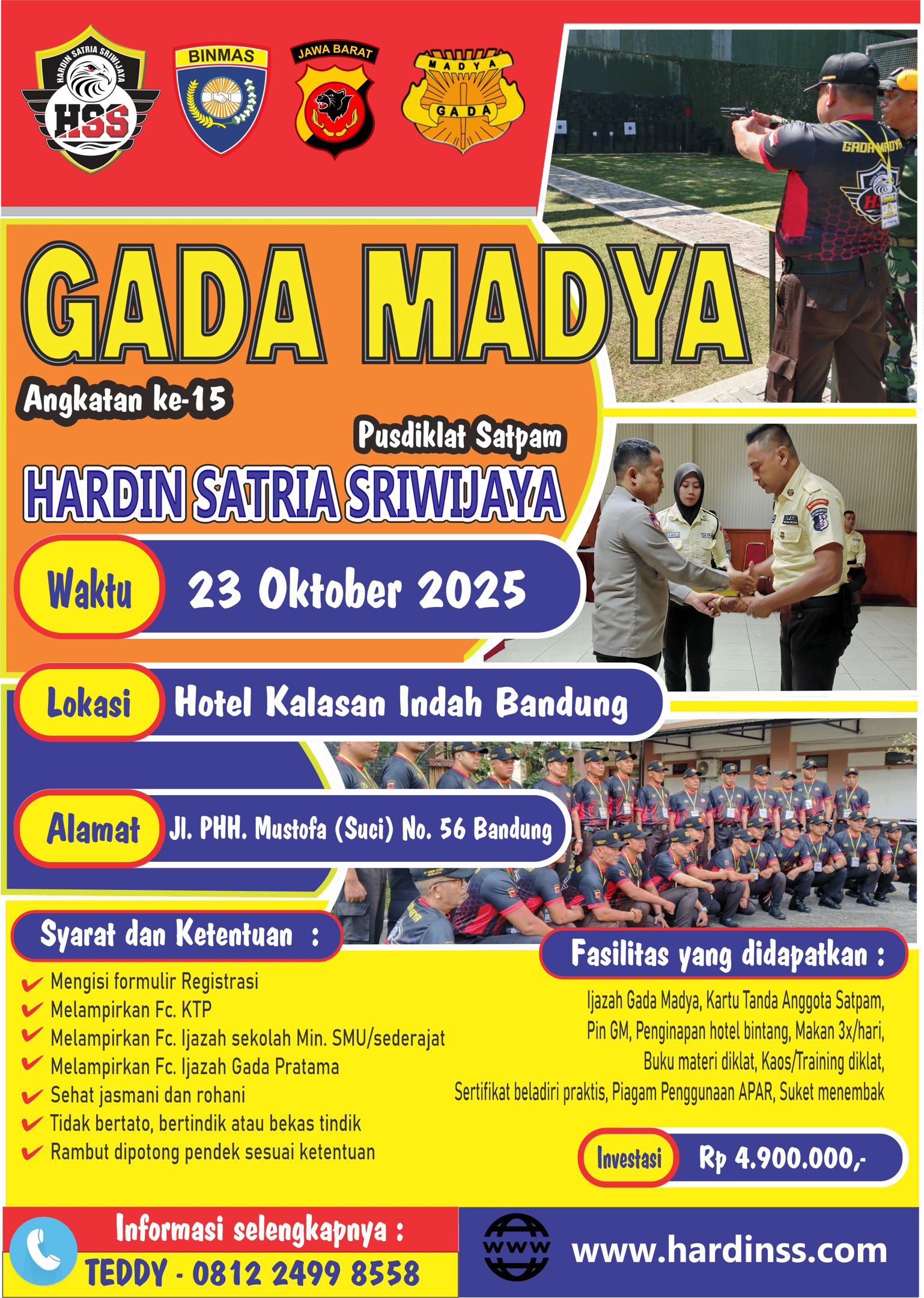 Pusdiklat Satpam Hardin Satria Sriwijaya, atau yang sering dikenal dengan singkatan HSS atau Hardin didirikan di Bandung pada tahun 2020 dengan visi menjadi pusat pendidikan dan pelatihan yang memegang teguh komitmen menjadikan pusdiklat sebagai kawah candradimuka untuk menghasilkan anggota Satpam yang kompeten